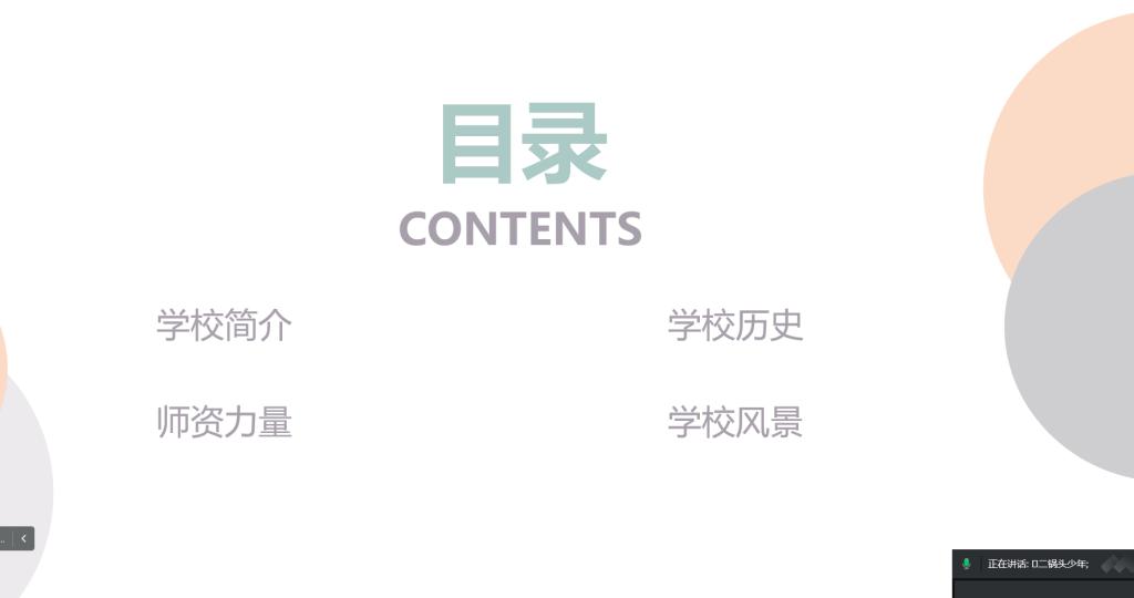 候方正同学围绕学校简介、学校历史、师资力量、学校风景四个方面为新生详细介绍了曲阜师范大学,曲阜师范大学是全国首批招收研究生高校、山东省重点大学、山东省一流学科建设高校。此外,她还围绕学院历史、学院排名、学院教育理念、名师、学院学科、科研实力等方面介绍了av大平台