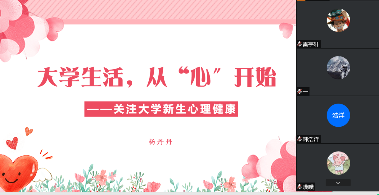为进一步引导2022级新生适应大学生活,普及心理健康知识,提高大学生心理素质,树立正确的心理理念,并增强新生对心理健康重要性的认识。9月13日,我院于线上开展“大学生活,从‘心’开始——关注大学新生心理健康”新生入学教育心理健康专题讲座,由学院心理辅导员杨丹丹担任主讲。