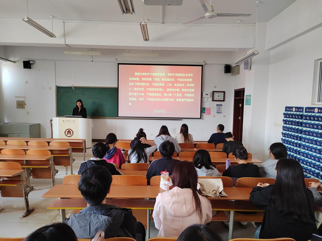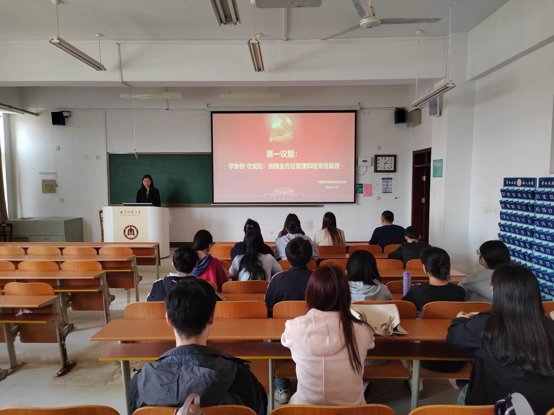会议结束后,党支部书记袁玉卓老师对此次主题党日进行总结。袁老师表示,各位党员应当深入学习《条例》内容,理解其中的精神实质和法律依据。只有通过深入学习,党员才能真正认识到党的纪律对于党员的重要性,增强自觉遵守纪律的意识。在日常工作和生活中,要坚持廉洁自律,严守政治纪律和组织纪律,不得违反党的组织原则和决定。作为党员应自觉做到严格遵守纪律、自觉接受处分、积极整改行为,才能更好地维护党的团结统一、保持党的纯洁性,为党的事业发展做出应有的贡献