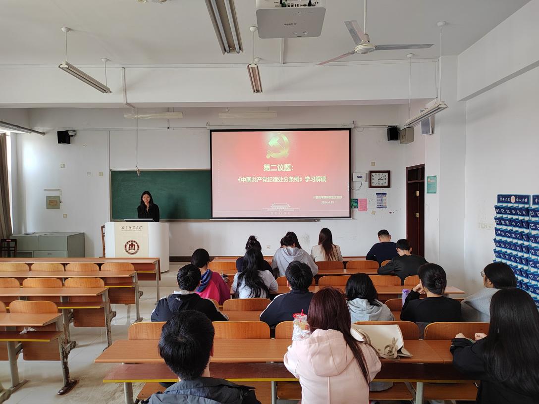 2024年4月19日,av大平台 研究生党支部于JS404会议室召开主题党日活动,会议由学习委员王玉霞主持,研究生党支部党员参加本次活动。