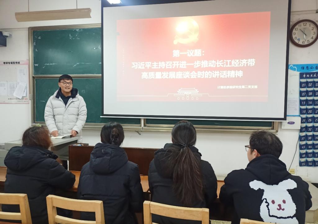 本次会议第一议题是“习近平主持召开进一步推动长江经济带高质量发展座谈会时的讲话精神”。会议伊始,参会党员共同学习了第一议题。习近平总书记强调,要完整、准确、全面贯彻新发展理念,坚持共抓大保护、不搞大开发,坚持生态优先、绿色发展,以科技创新为引领,统筹推进生态环境保护和经济社会发展,加强政策协同和工作协同,谋长远之势、行长久之策、建久安之基,进一步推动长江经济带高质量发展,更好支撑和服务中国式现代化。推动长江经济带高质量发展,坚持创新引领产业发展是动力。创新是发展的“源头活水”,要坚持创新引领发展,把长江经济带的科研优势、人才优势转化为发展优势。积极开辟发展新领域新赛道,塑造发展新动能新优势。推动长江经济带高质量发展,坚持协同发展是稳定剂,稳步推进生态共同体和利益共同体建设。统筹好发展和安全最终实现省际共商、生态共治、全域共建、发展共享的健康发展全局。