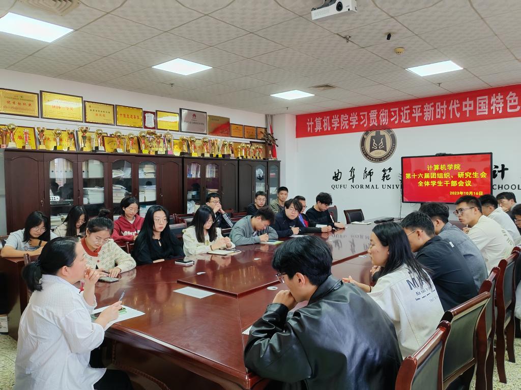 于JC1011会议室召开第十六届研究生团组织、研究生会全体学生干部会议。本次会议由院研究生辅导员程荣花老师主持,院研究生团组织、研究生会全体学生干部参加。