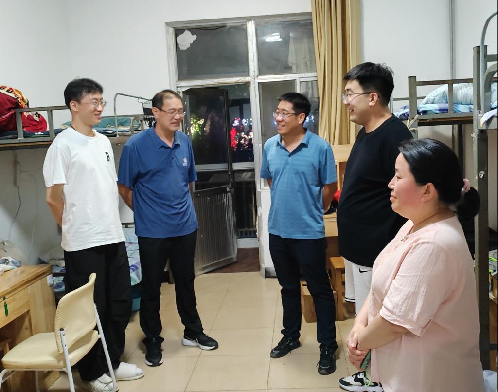 副院长刘效武教授、副院长尚军亮教授、研究生辅导员程荣花老师及研究生会主要学生干部深入新生宿舍,了解学生住宿情况并代表学院对他们的到来表示欢迎。老师们对新生提出的问题进行了耐心细致的回答,并对他们提出了期望,希望他们尽快融入新环境、适应新生活,有困难和问题要及时向辅导员老师反映,以乐观积极的态度面对即将到来研究生学习和生活。