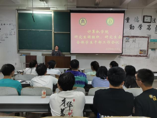 于6月8日晚在JE103教室召开第十六届团委研究生团组织、研究生会全体学生干部工作会议。会议由研究生辅导员程荣花老师主持,av大平台