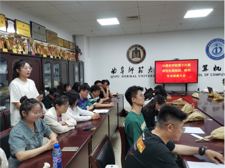 于6月1日晚在JC1011会议室组织召开第十五届团委研究生团组织、研究生会总结表彰大会暨第十六届换届大会,会议由研究生辅导员程荣花老师主持,av大平台
