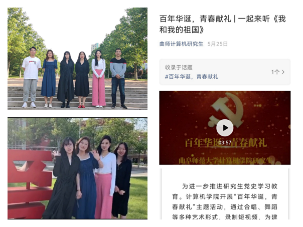 研究生党支部依托“党史学习教育”推出“庆百年”系列微视频。微视频分为“百年风华 党史回眸 – 我来讲党课”,“百年华诞 青春献礼 – 网络文艺汇演”和“庆百年华诞 展优研风采 – 优秀研究生风采展”三个系列。微视频一经推出,受到全院师生的广泛好评。