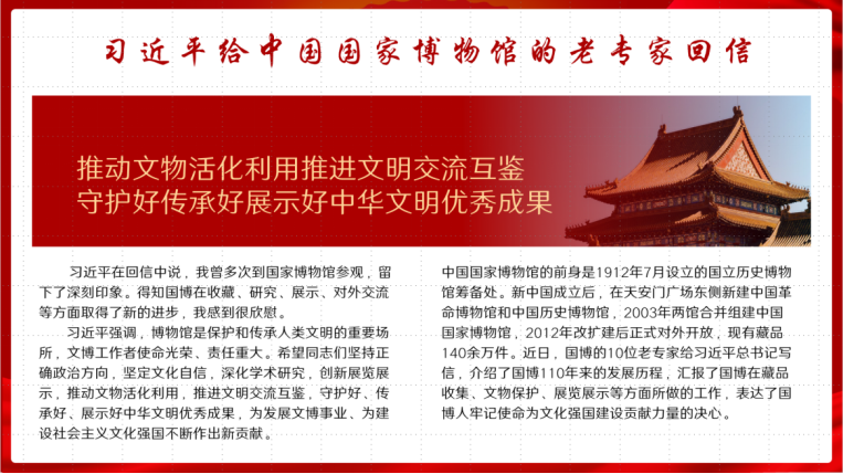 会议首先集中学习了习近平给中国国家博物馆的老专家、参加海峡青年论坛的台湾青年回信以及向世界互联网大会国际组织成立致贺信。习近平指出,网络空间关乎人类命运,网络空间未来应由世界各国共同开创。习近平强调,希望同志们坚持正确政治方向,坚定文化自信,深化学术研究,创新展览展示,守护好、传承好、展示好中华文明优秀成果;希望台湾青年同大陆青年同心同行、携手打拼,锲而不舍、驰而不息,让青春在实现中华民族伟大复兴中国梦的伟大进程中绽放异彩。