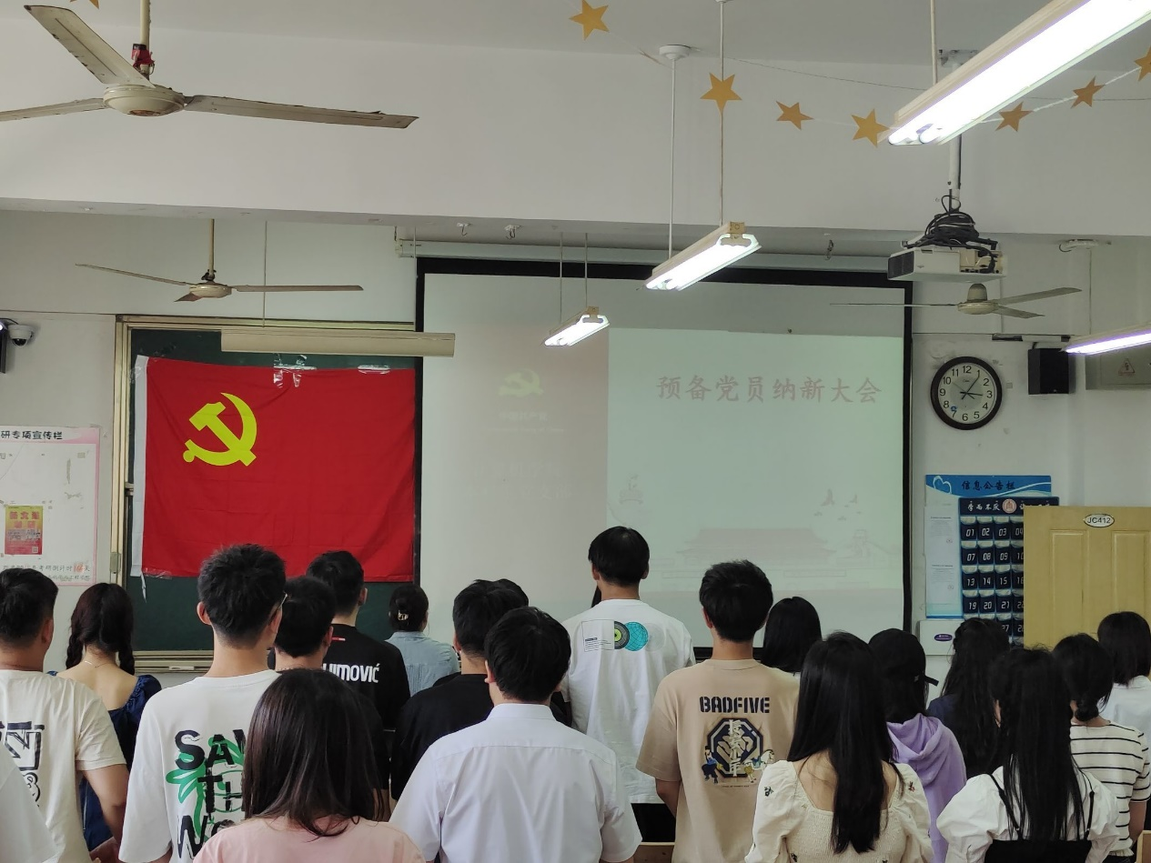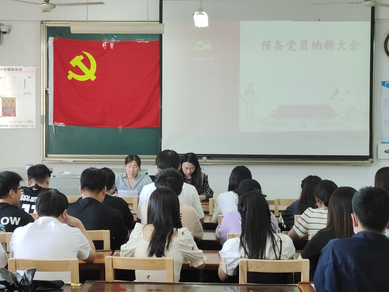 决议通过后,党支部书记杨丹丹对顺利纳新的八位预备党员表示热烈祝贺,对全体与会党员提出要常怀感恩之心,不忘初心,严于律己,在政治上有觉悟,思想上有意识,不断加强党性修养、坚持综合发展、发挥模范带头作用。最后,预备党员宣读入党誓词。在声声坚定的誓言中,本次会议圆满结束。