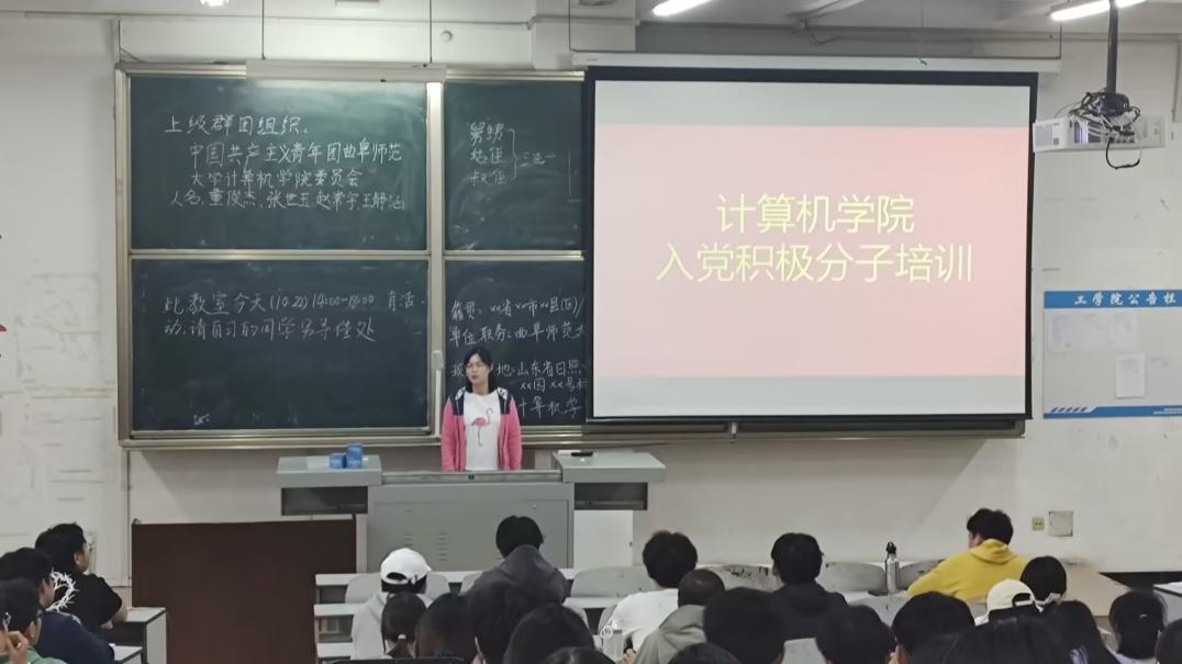 2023年10月22日下午,av大平台 本科生党支部在E202举行了第十六、十七期入党积极分子培训会,av大平台 本科生第一党支部书记于运清到场为同学们讲述了主题为“赓续使命担当,筑牢青年信仰”的思政第一课。