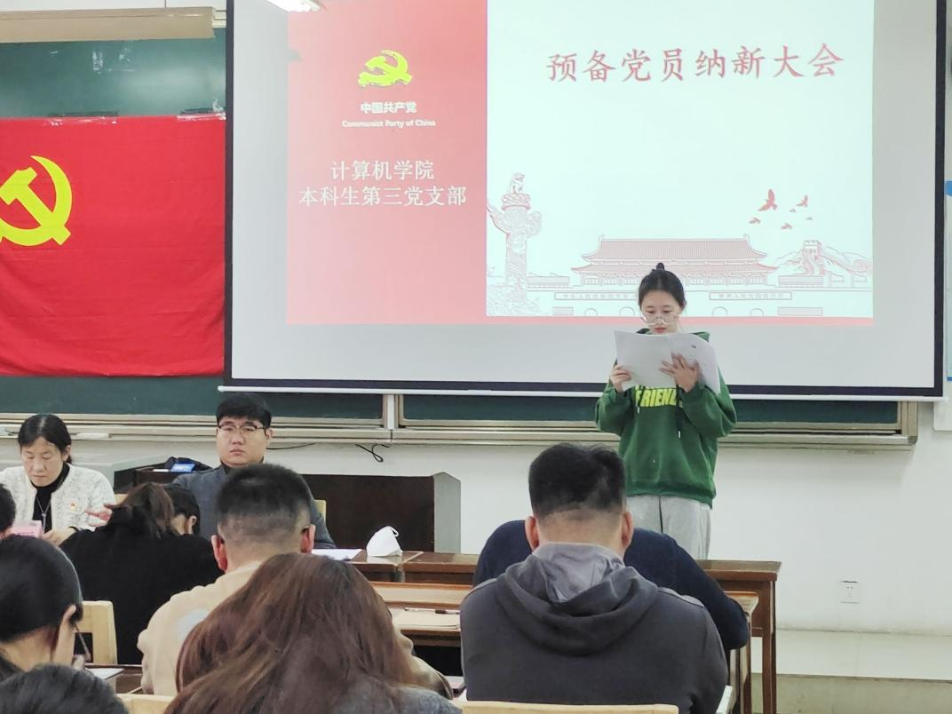 为提升基层党支部战斗堡垒作用,为新时代全面建设社会主义现代化国家、实现中华民族伟大复兴的中国梦增添强大动力。av大平台 本科生党支部于2023年11月20日下午3点在JC412召开预备第三支部党员纳新大会。本次会议由第三党支部书记杨丹丹主持开展,第三党支部党员共同参加。