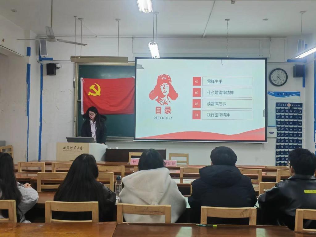 本科生第二党支部书记孙宇带领大家共同学习了雷锋生平。鼓励支部成员学习雷锋,以雷锋为榜样,默默奉献,不计个人得失,追求平凡中的伟大。