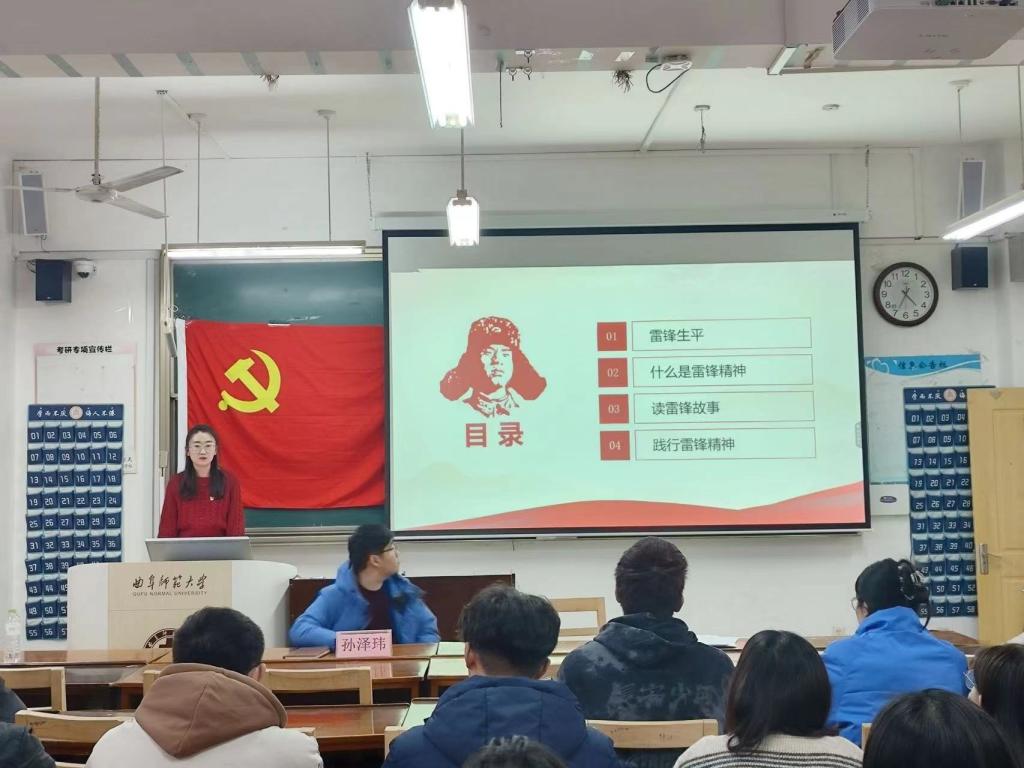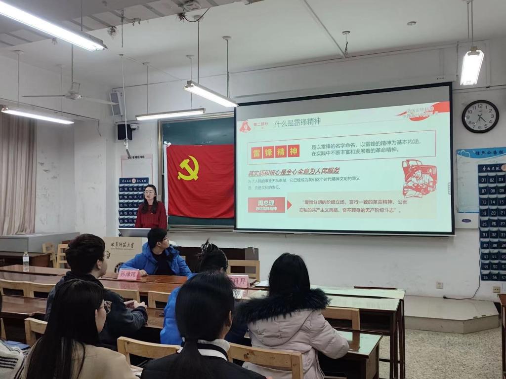 av大平台 本科生第三党支部书记杨丹丹带领大家共同学习了雷锋生平。鼓励支部成员学习雷锋,以雷锋为榜样,默默奉献,不计个人得失,追求平凡中的伟大。