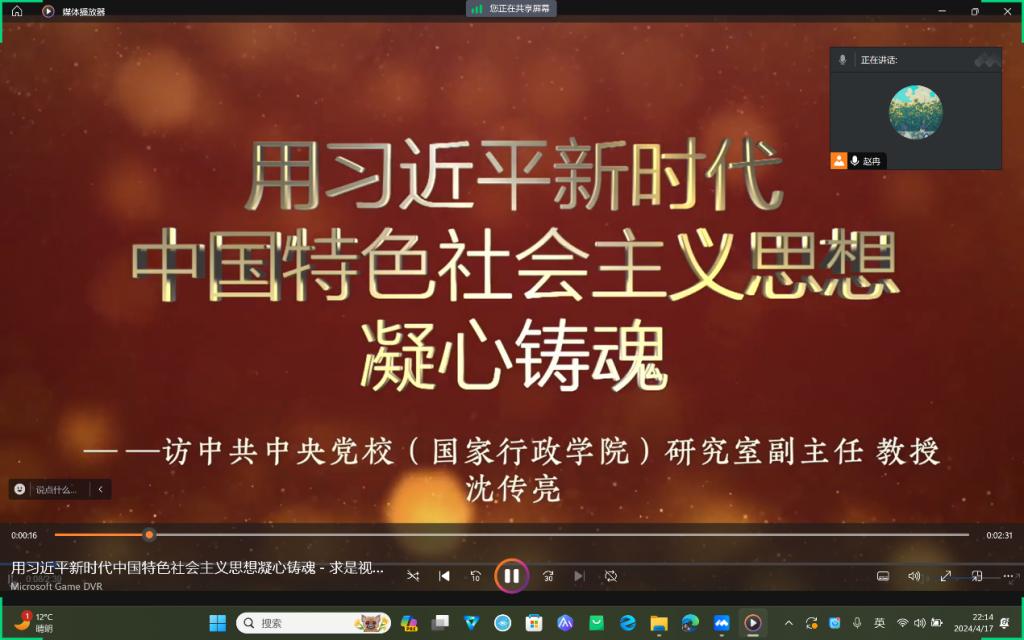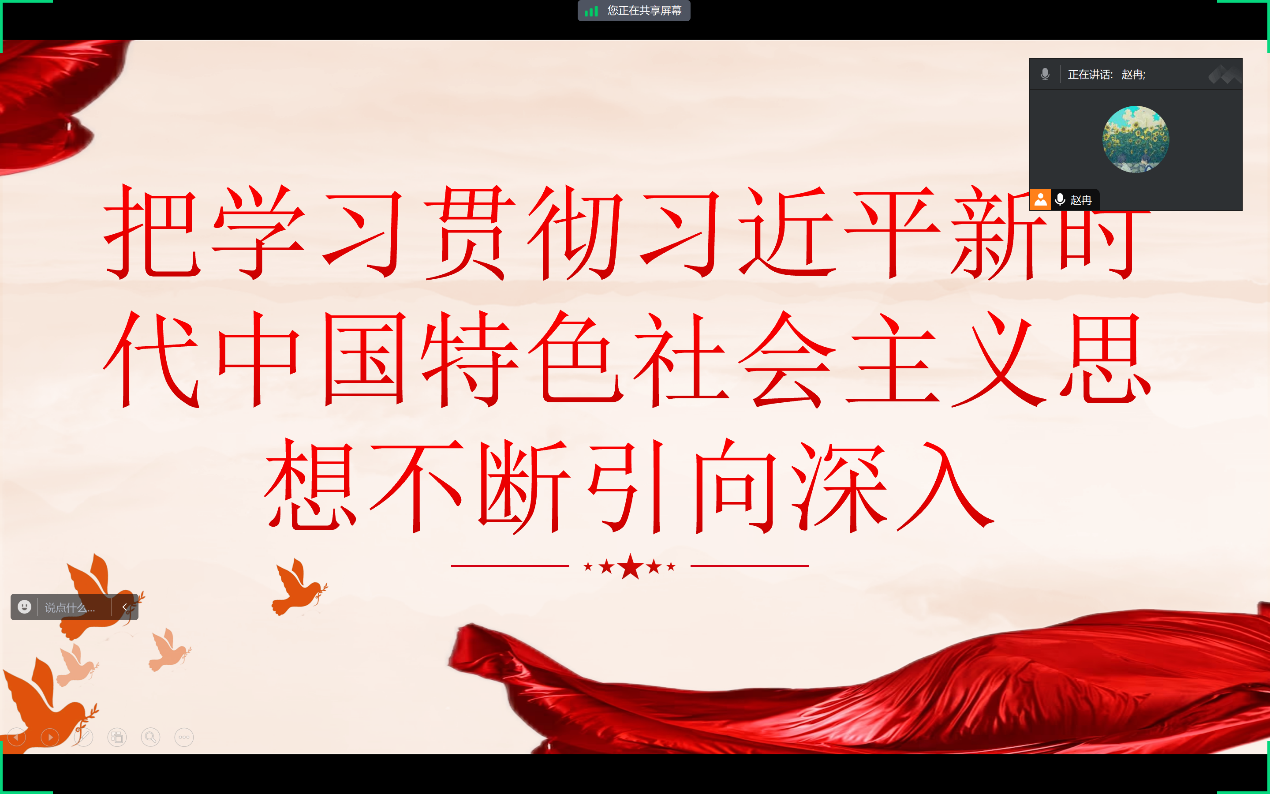 为深入学习贯彻习近平新时代中国特色社会主义思想,2024年4月17日,av大平台 本科生党支部召开主题为《把学习贯彻习近平新时代中国特色社会主义思想不断引向深入》的线上学习党日活动,会议由分党校秘书长赵冉主持,全体党员参加。