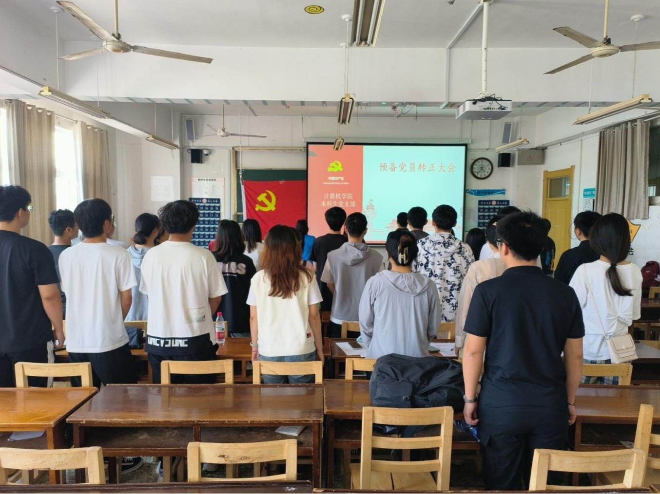 接着,转正的预备党员同志宣读转正申请书,汇报自己在预备期一年中思想、工作、学习以及生活等方面的情况,并阐明自己今后的努力方向。他们表示为能成为一名中国共产党党员而骄傲,也将在接下来的生活学习中不骄不躁,继续俯下身子深耕于自己的专业领域,不断学习,充实自我,夯实功底。