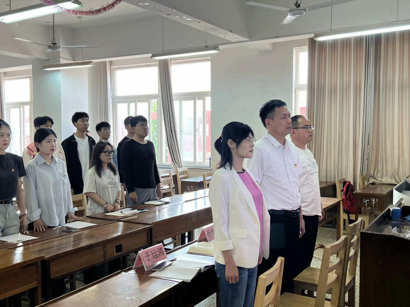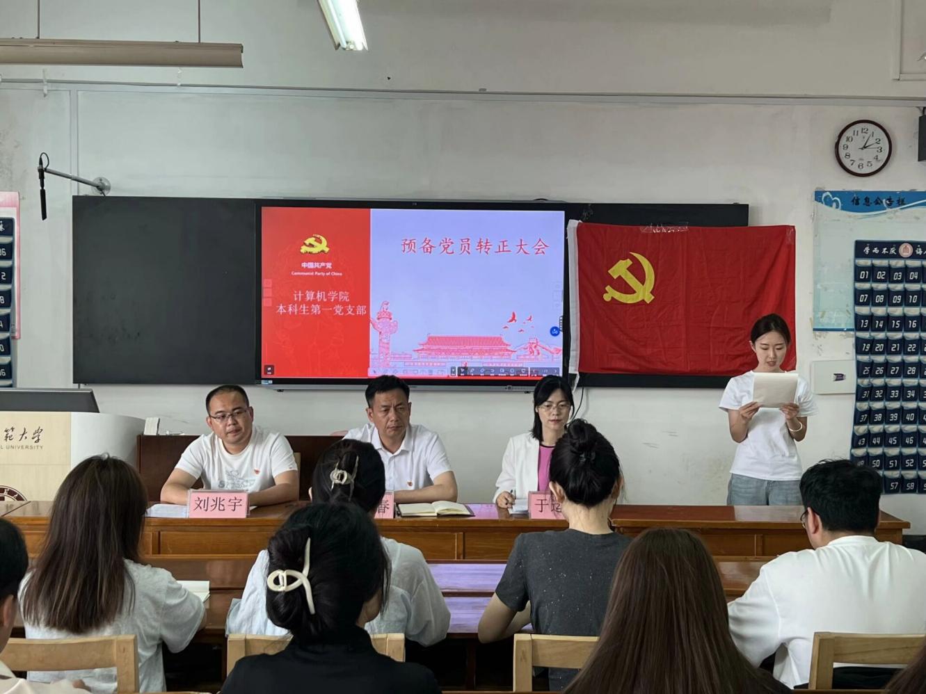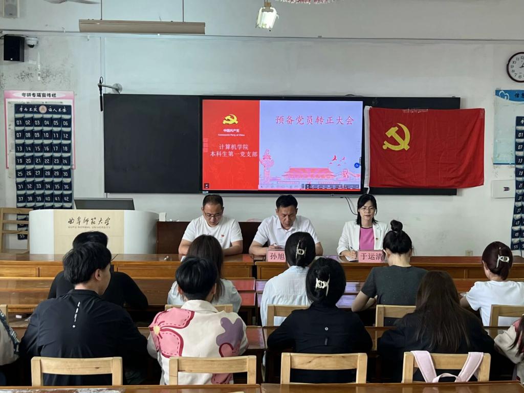 2024年5月30日下午四点半,av大平台 本科生第一党支部于JC405召开预备党员转正大会,大会就王子雨、纪旭乐同志预备党员转正问题进行讨论和表决。av大平台 党委副书记孙旭春、av大平台 本科生第一党支部书记于运清、副书记刘兆宇及学生党员参加此次会议。