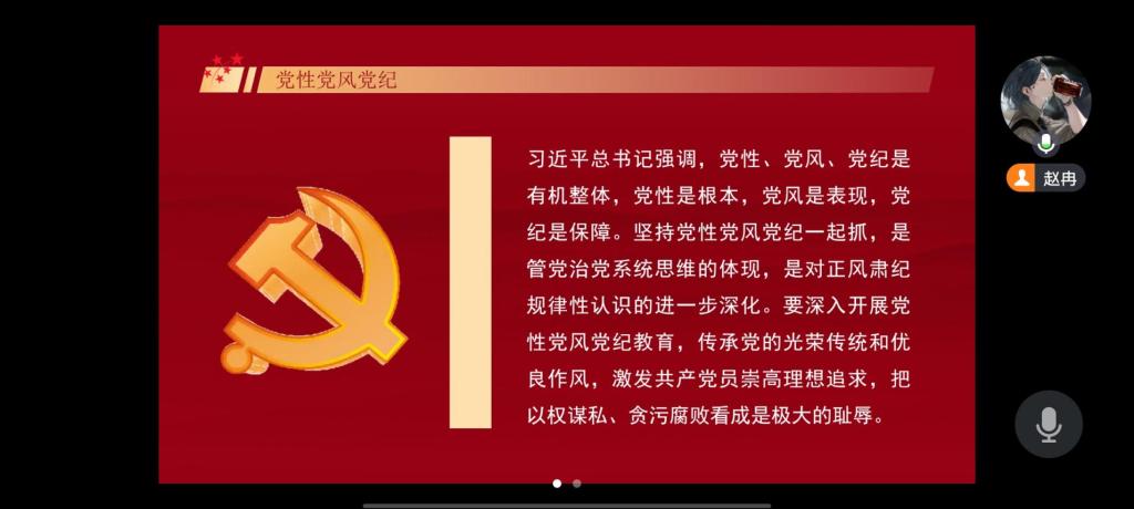为深入学习贯彻习近平新时代中国特色社会主义思想,2024年7月13日,av大平台 本科生党支部召开主题为《坚持党性党风党纪一起抓》的线上学习党日活动,会议由分党校秘书长赵冉主持,全体党员参加。