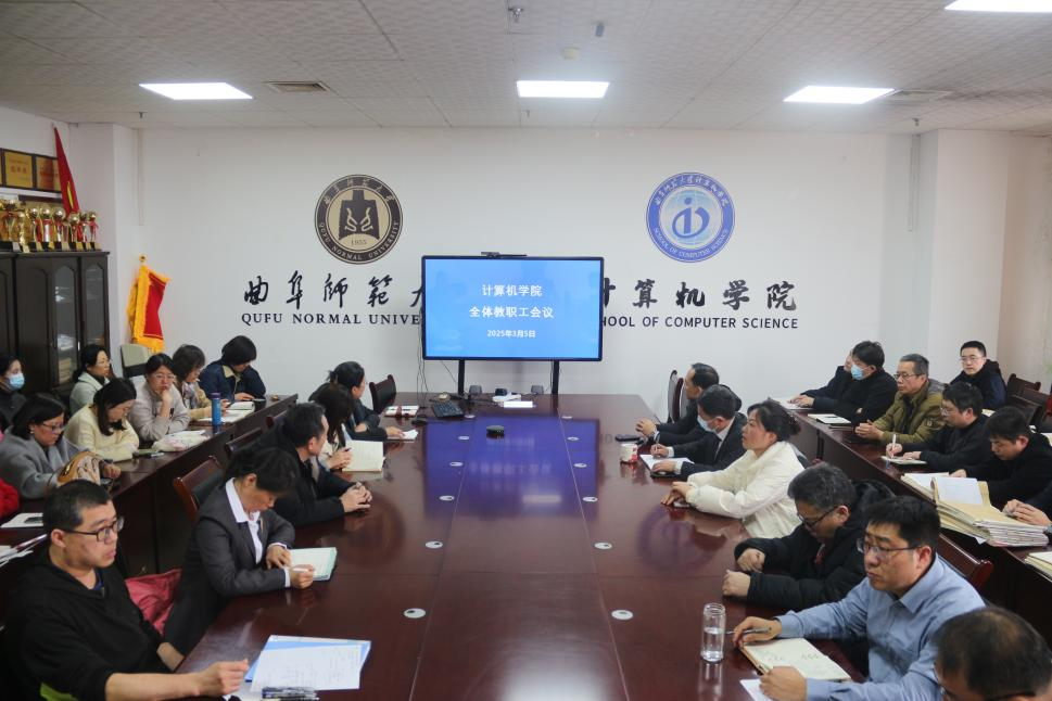 在学院会议室C1011召开教职工大会,全院教职工参会。