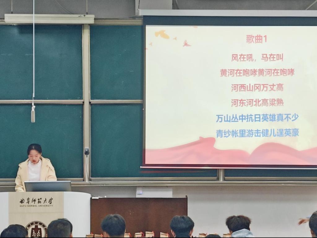 活动伊始,2023级计科(师范)2班团支书艾姜欢带领同学们重温了波澜壮阔的革命岁月,深刻理解了革命先烈为国家和人民做出的巨大牺牲。在随后的“听歌识曲”和“我朗诵你猜歌”环节中,同学们积极举手抢答,通过互动竞猜进一步加深了对红色文化的理解,增强了活动的趣味性和参与感。