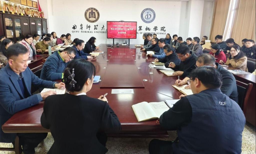 在C1011会议室举行教职工政治理论学习活动,集体学习党的二十届四中全会精神。本次活动由党委书记张明洁主持,全体教职工参加。